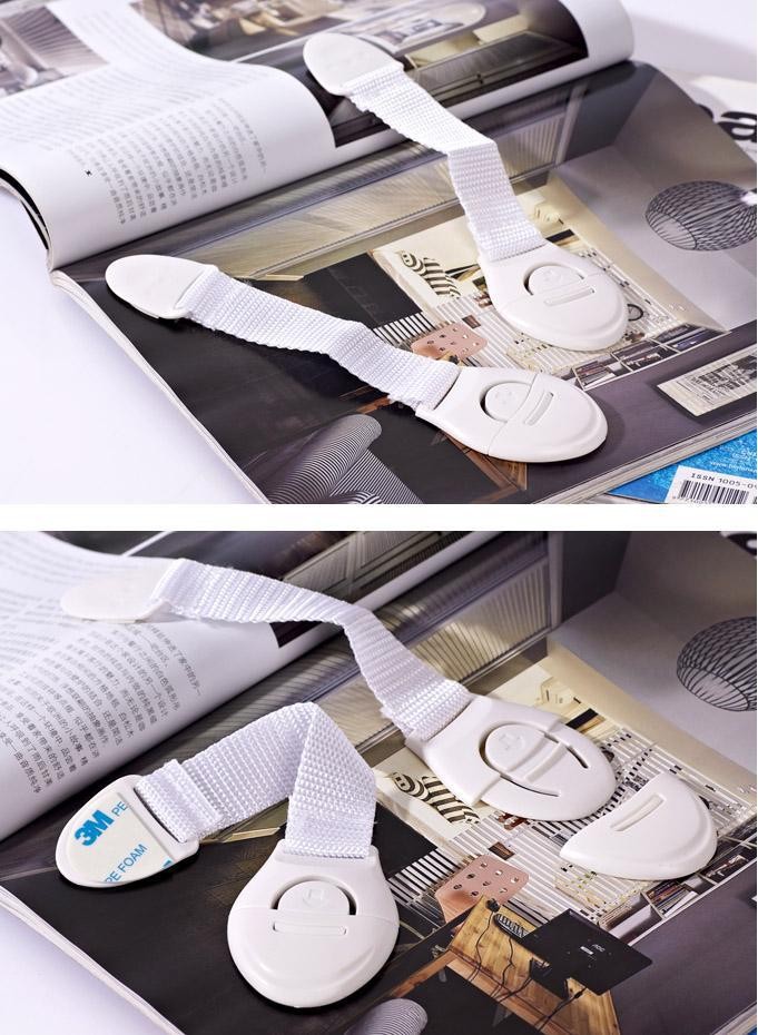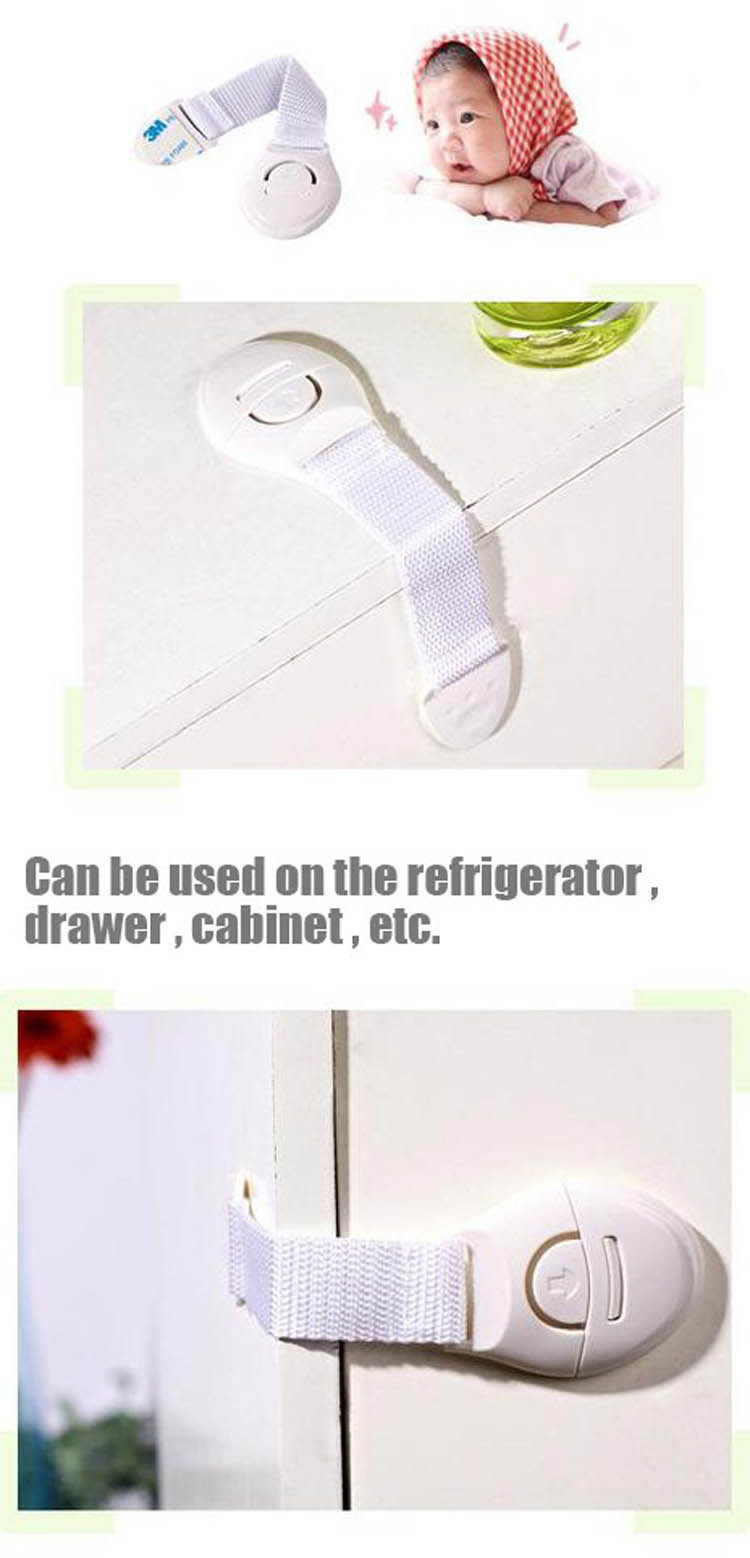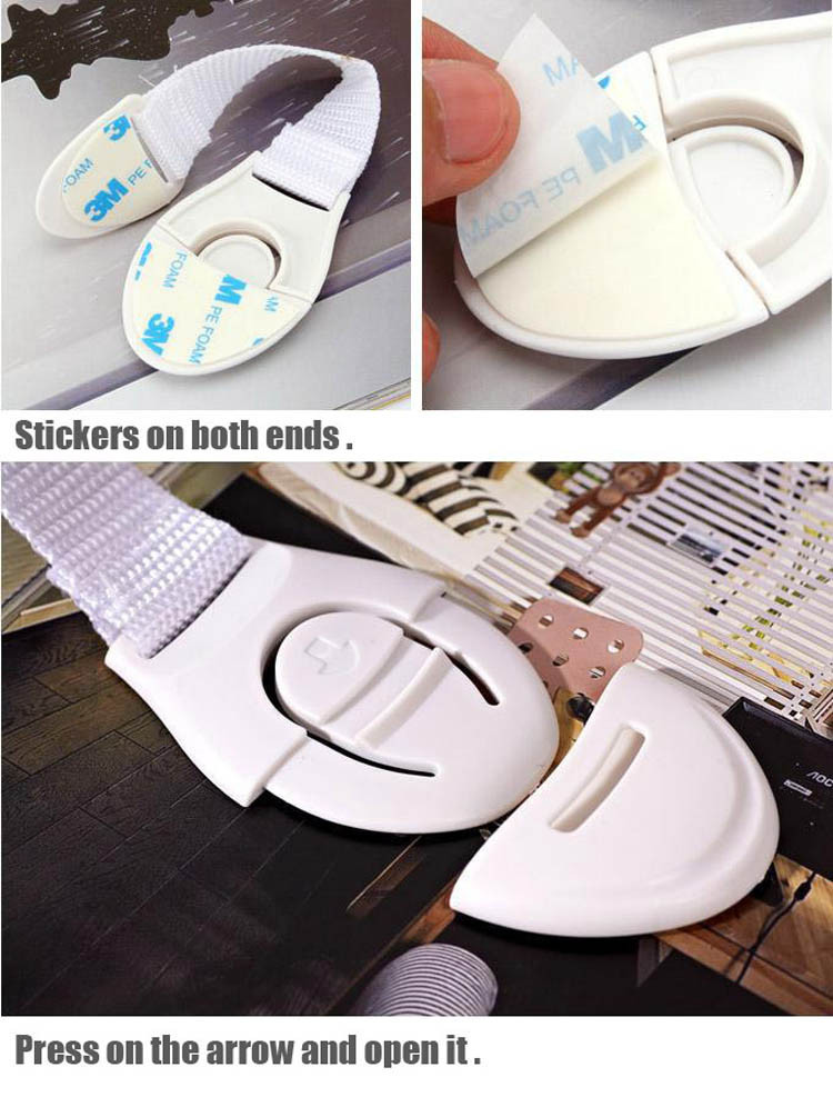 High quality child safety cabinet lock from KM. This lock can be used to lock drawers, cabinets, Refrigerator, Microwave, commode and other home objects, so that a toddler cannot open it on his own. It can be easily unlocked and locked by an adult. Features in built Strong Foam tape. Just peel off and stick where required. No need to do any drilling or alteration of the furniture. Remove when not required. Does not damage the furniture.