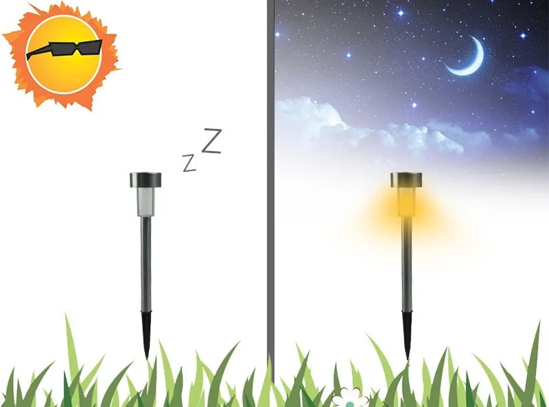 Premium quality stainless steel bright white LED solar lights. Adopt latest improved solar panel, provides better performance and prolonged usage time. The solar panel converts sunlight during the day time and recharge the battery. At night the light turn on automatically. Light assemblies, stake sections, connectors, and durable ground spikes are included. This energy-efficient, low-maintenance solar lights add a charming, decorative glow to your driveway, patio, or flowerbeds.